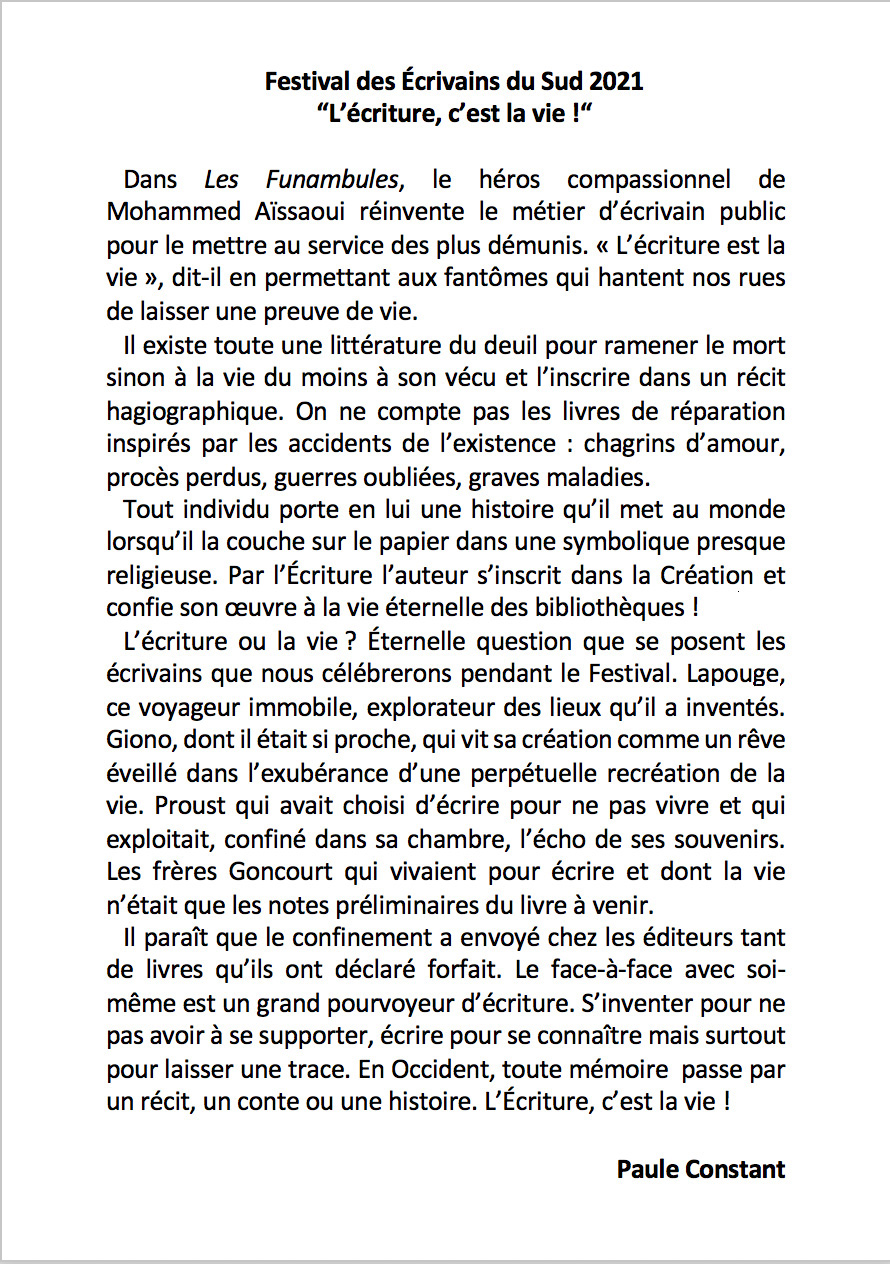 Écrivains du Sud seront désormais une des manifestations de ce Festival.