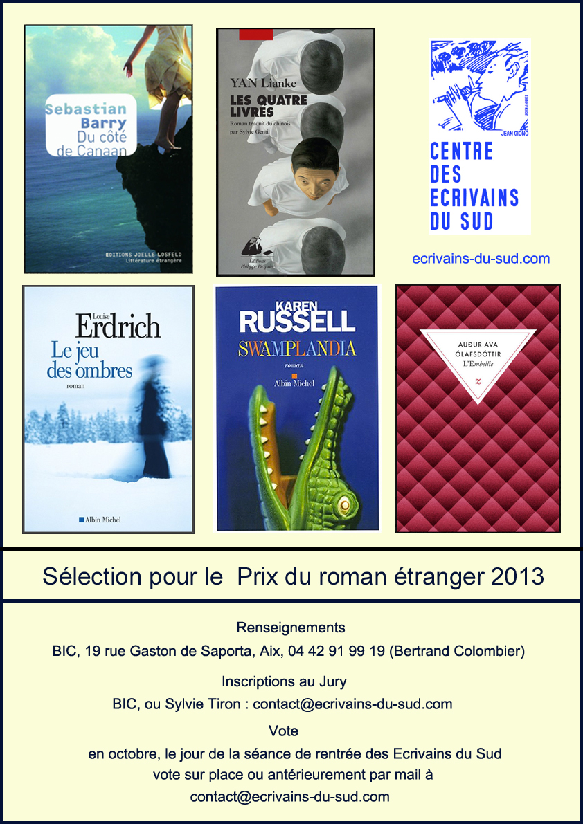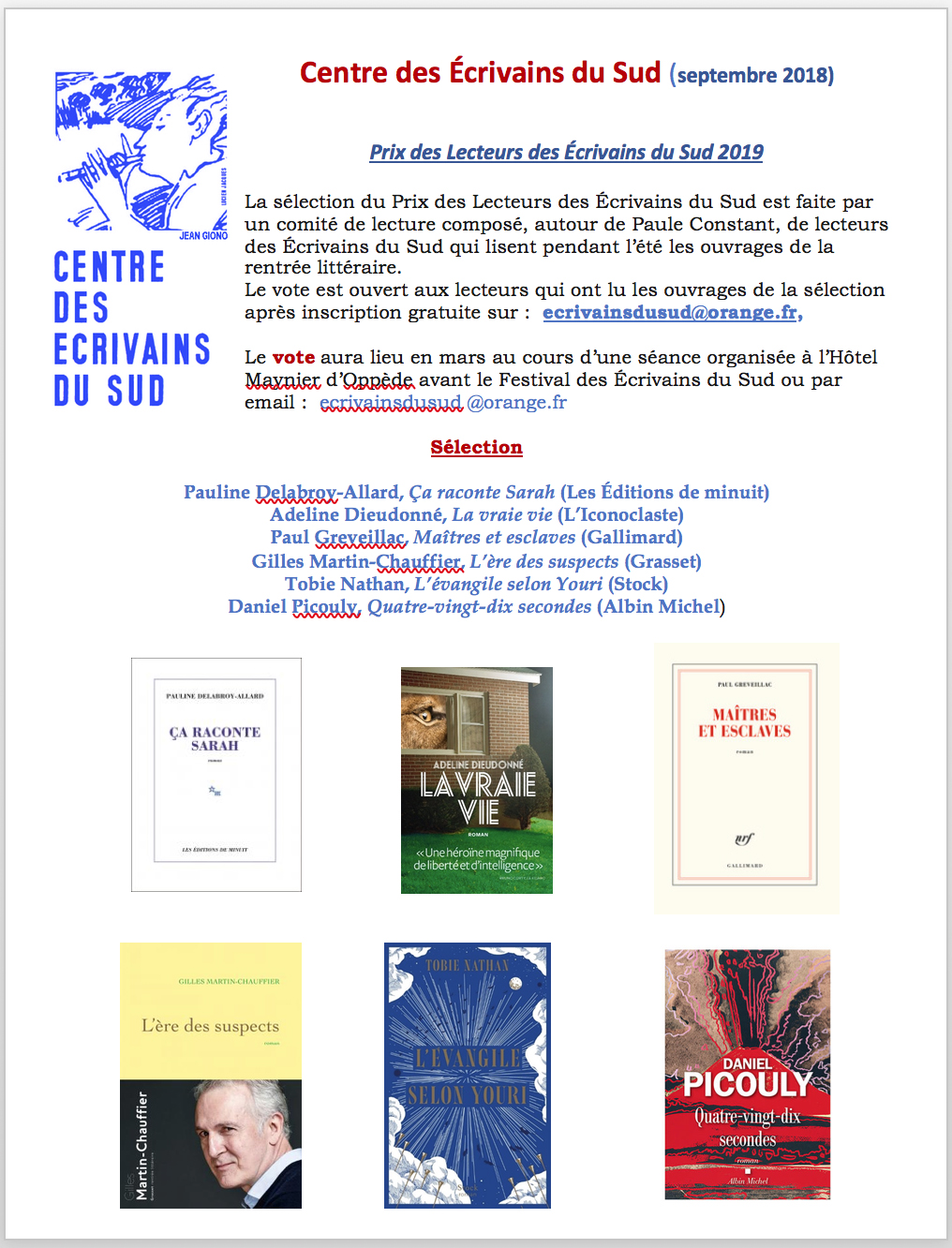 (sélection pour le prix Méjanes des Écrivains du sud) ; septembre