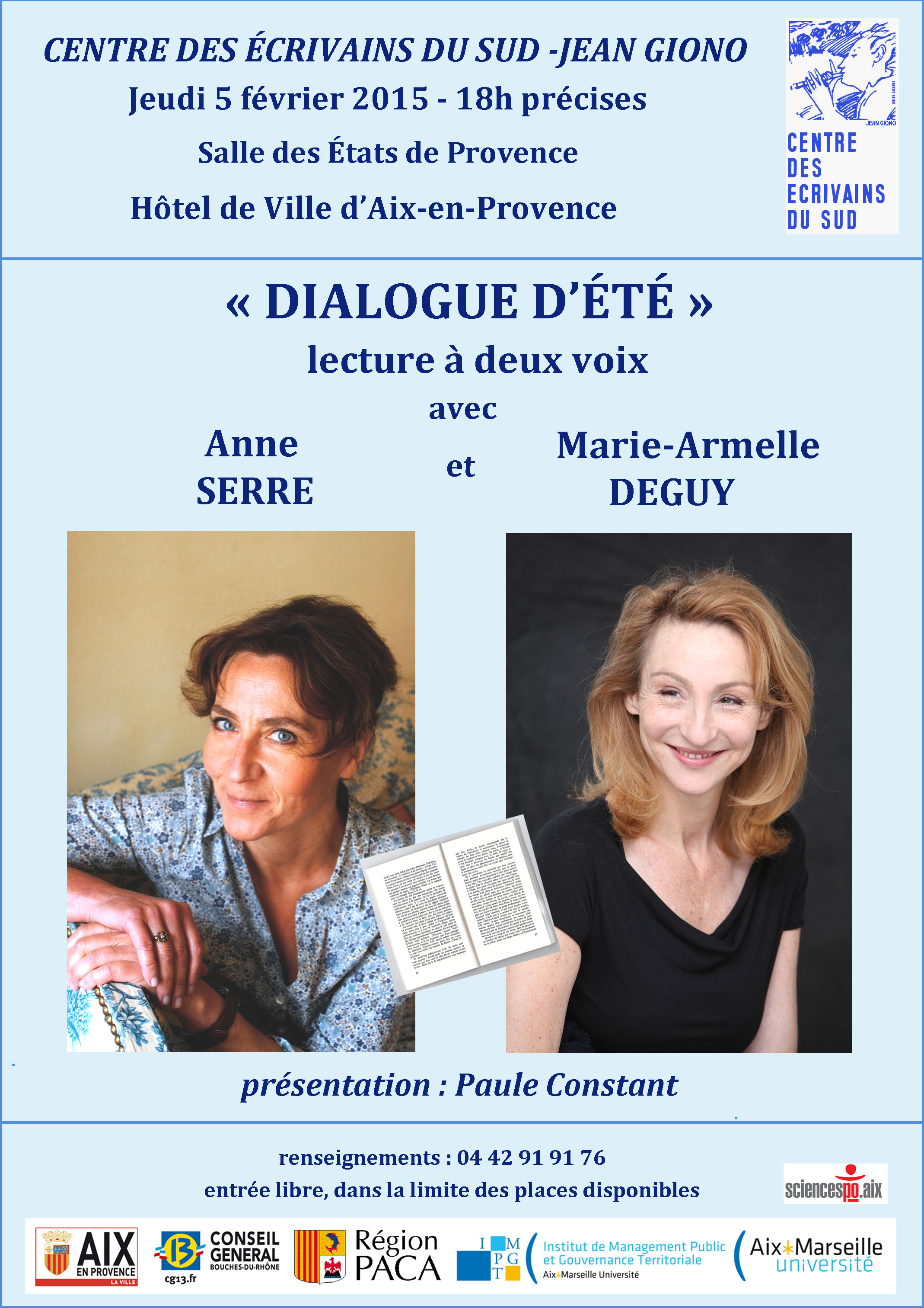 5 février 2015. "Dialogue d'été", Lecture à deux voix, avec Anne-Serre et Marie-Armelle Deguy.