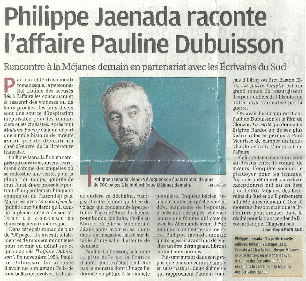 9 décembre 2015. "La petite femelle", de Philippe Jaenada. Rencontre avec l'auteur.