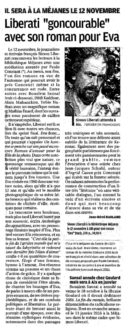 Annonce (avec page 2 la présentation d'Eva) Agenda d'Aix La Provence Chronique