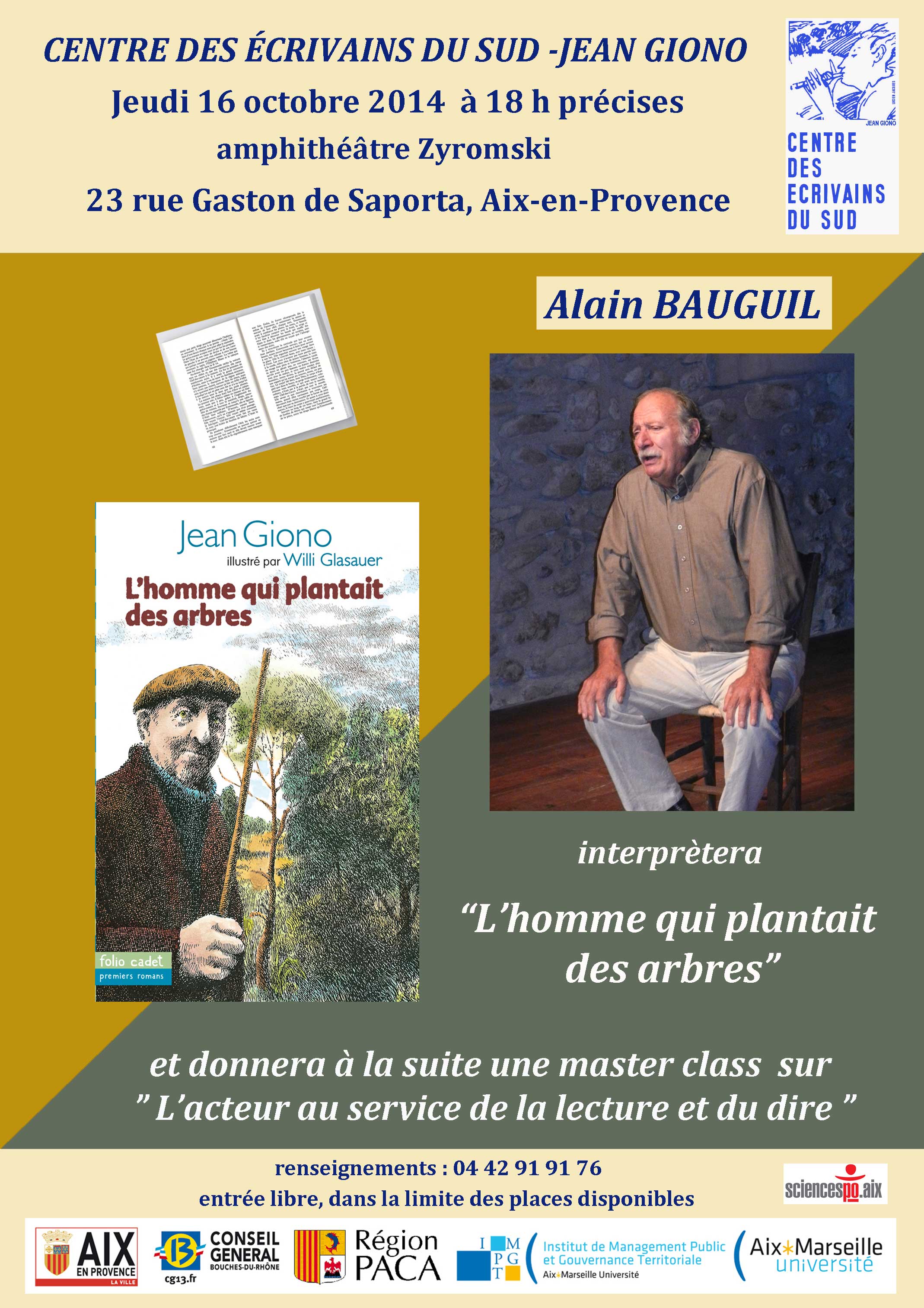 16 octobre 2014. Alain Bauguil interprète "L'homme qui plantait des arbres" de Jean Giono et donne à la suite une Master class sur "L'acteur au service de la lecture et du dire".