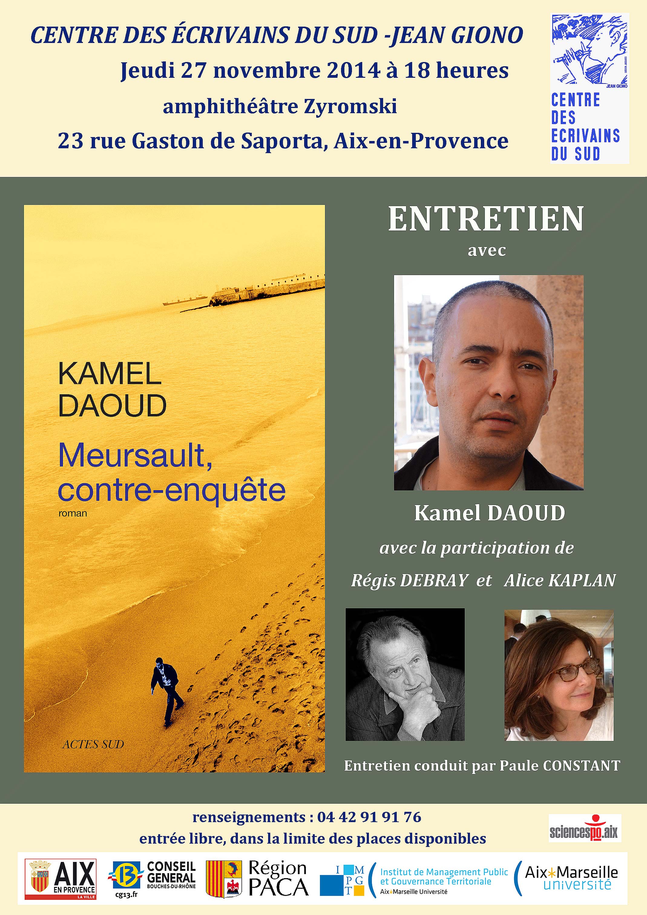 27 novembre 2014. "Contre-enquête" : Entretien avec Kamel Daoud. Participations de Régis Debray et Alice Kaplan.