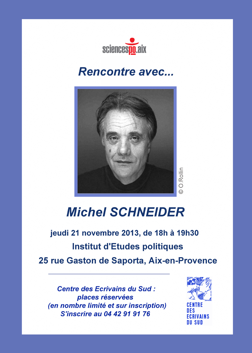 des Ecrivains du Sud. Rencontre avec... Michel Schneider. Amphithéâtre