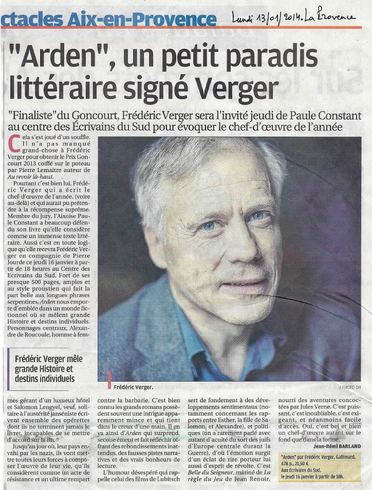 Le mercredi 13 janvier à 18 heures,amphithéâtre de la Verrière de la Bibiothèque Méjanes, 8-10 rue des Allumettes, Aix-en-Provence.