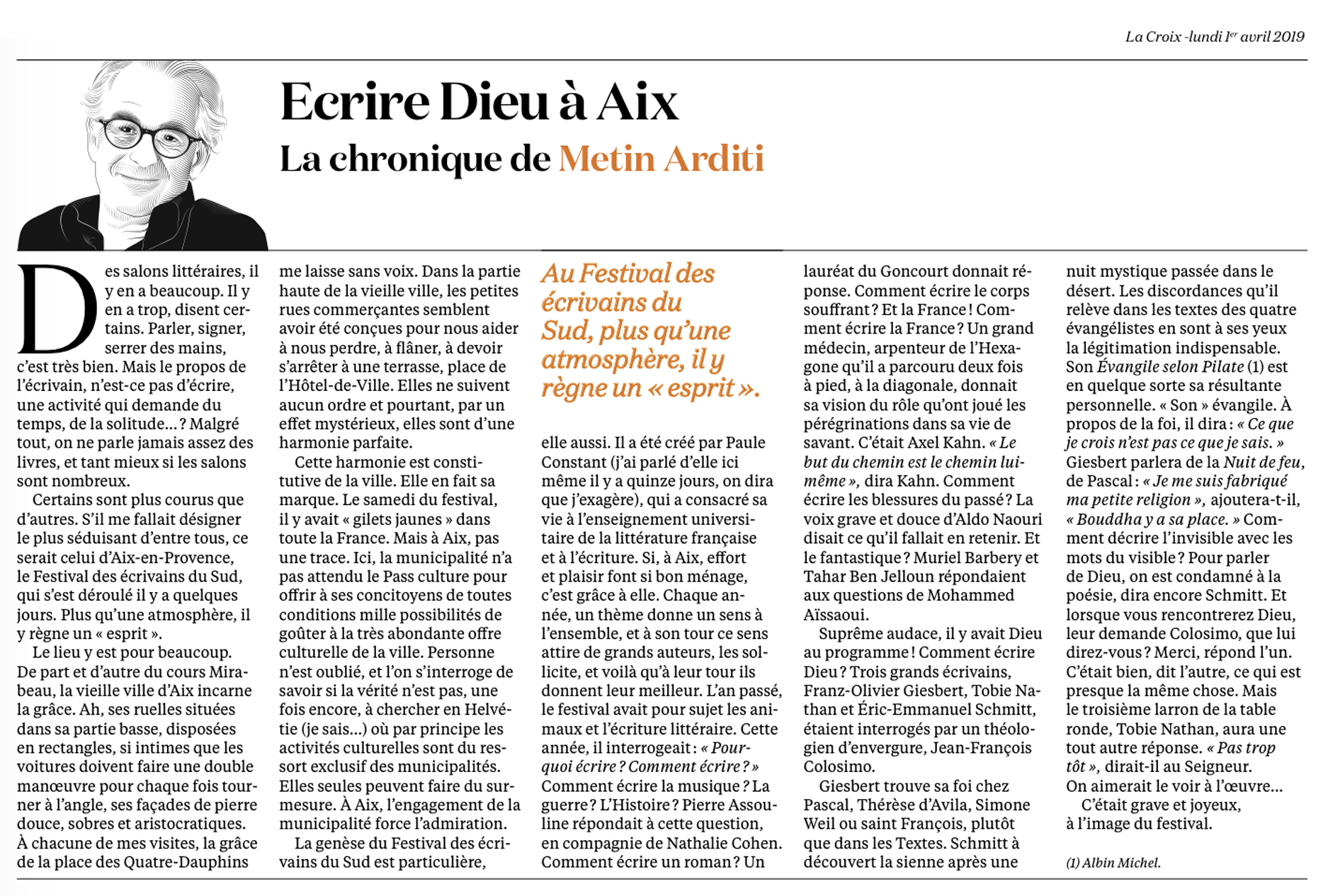 Metin Arditi Pierre Assouline Muriel Barbery Tahar Ben Jelloun