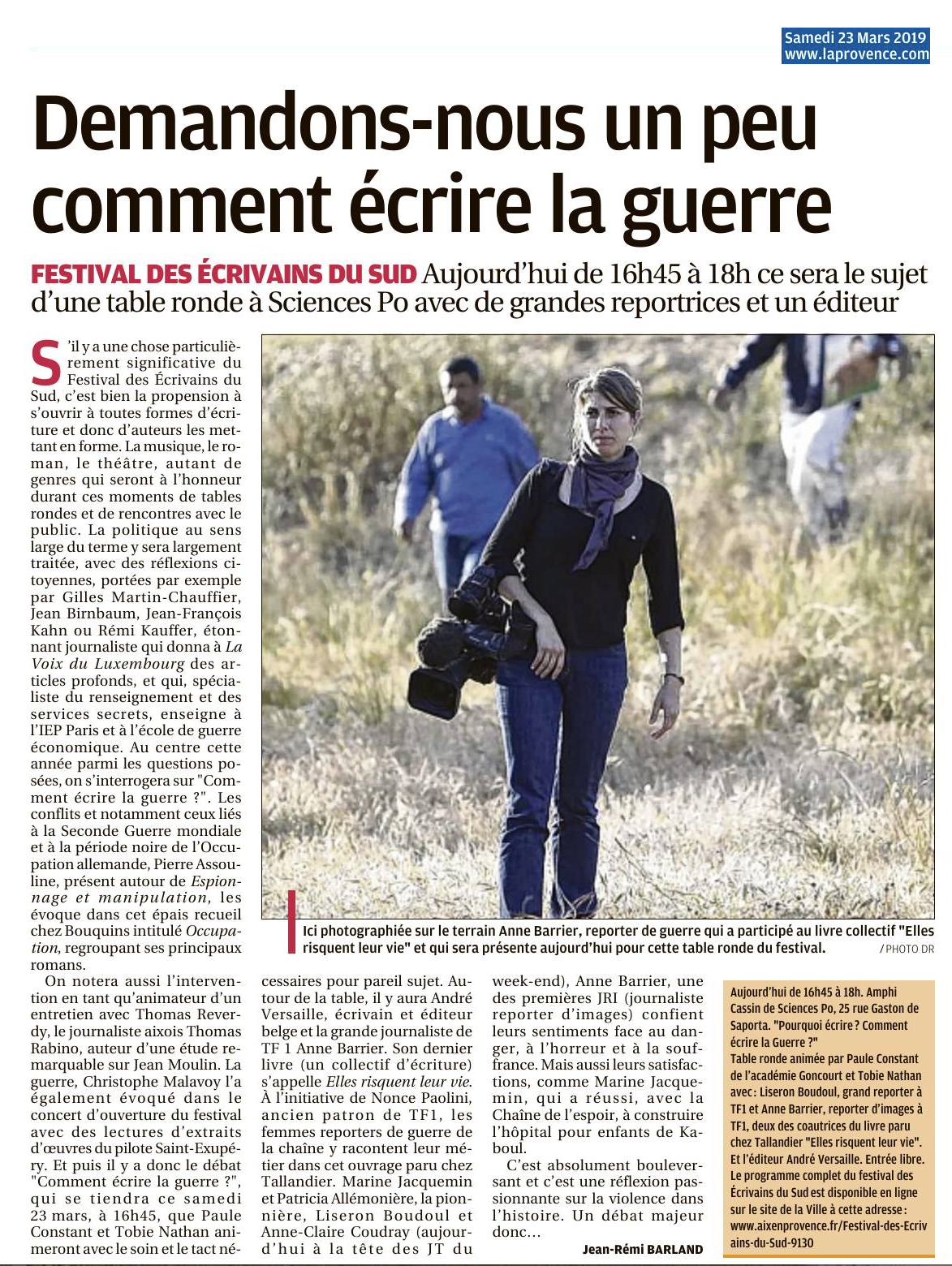 Affluence Chronique M. Arditi Tables rondes Écrire la Guerre