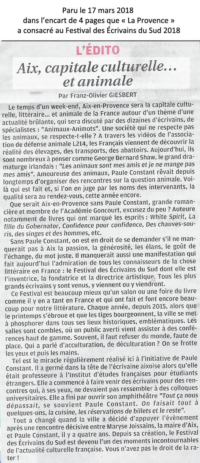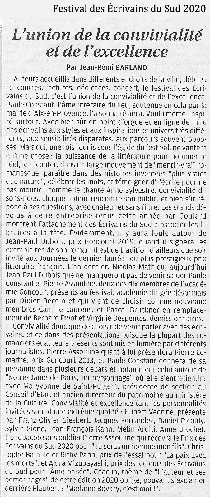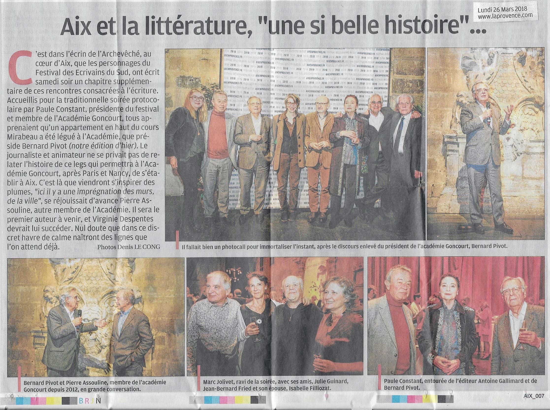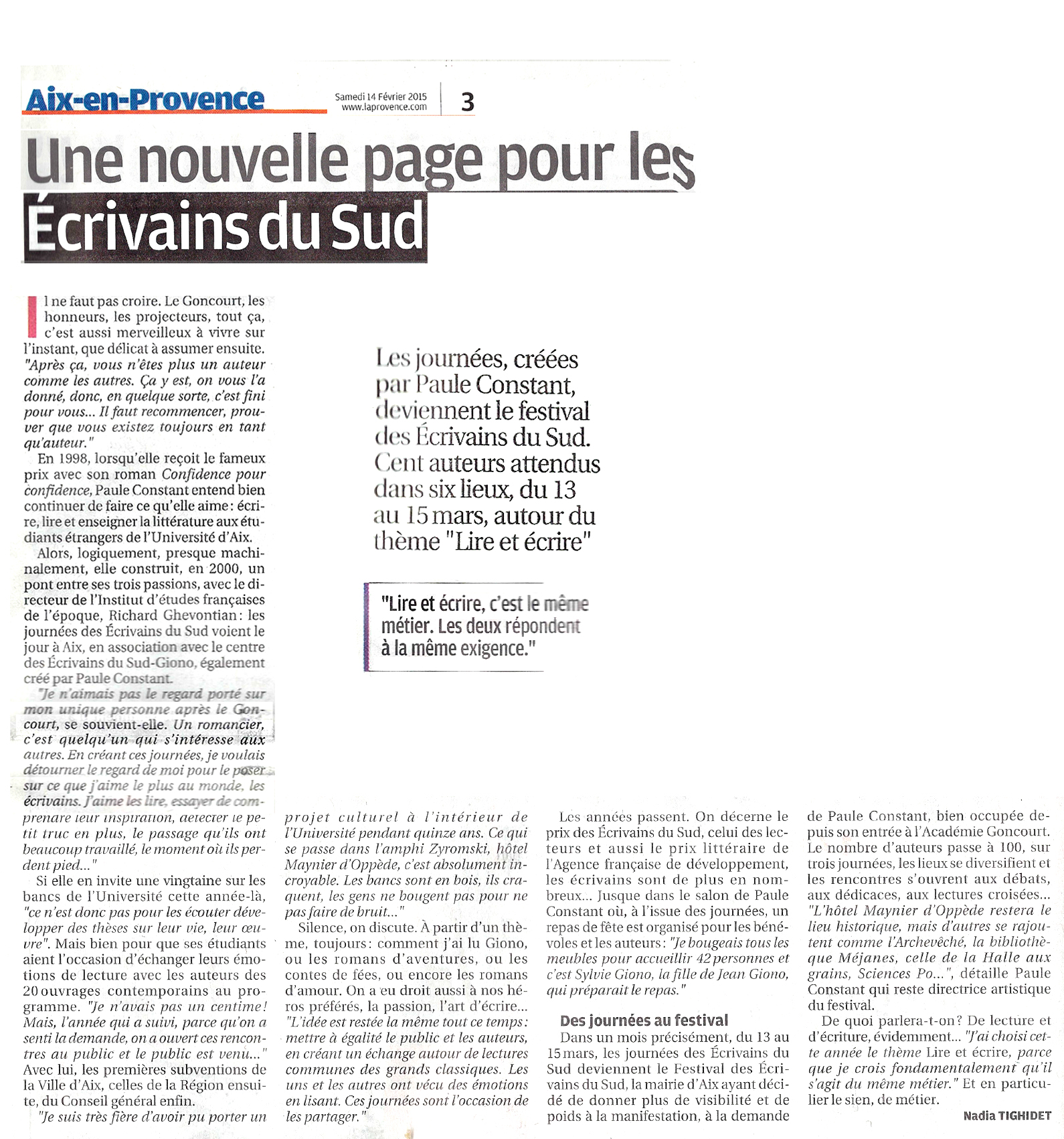 14 février 2015. Une nouvelle page pour les Ecrivains du Sud. (La Provence)