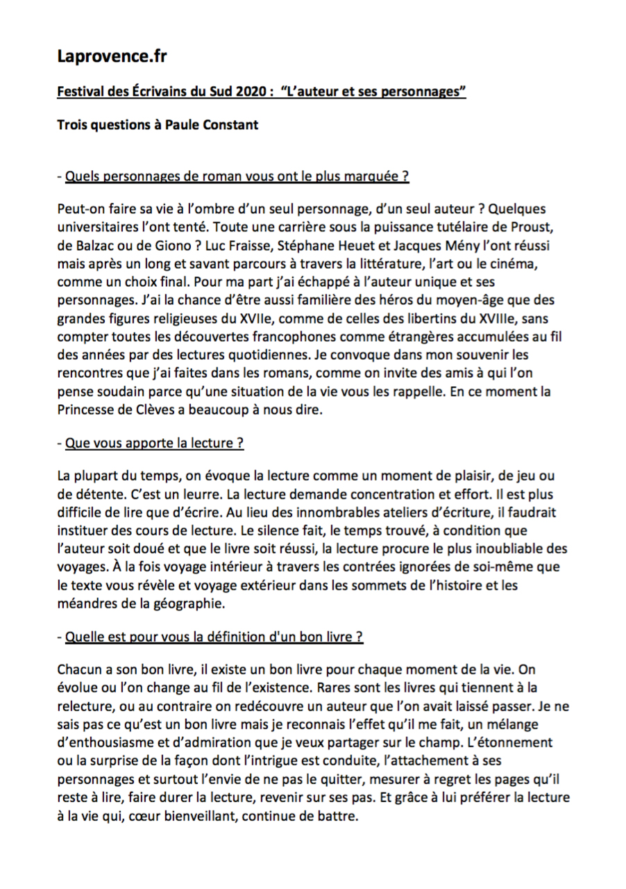 Trois questions à Paule Constant