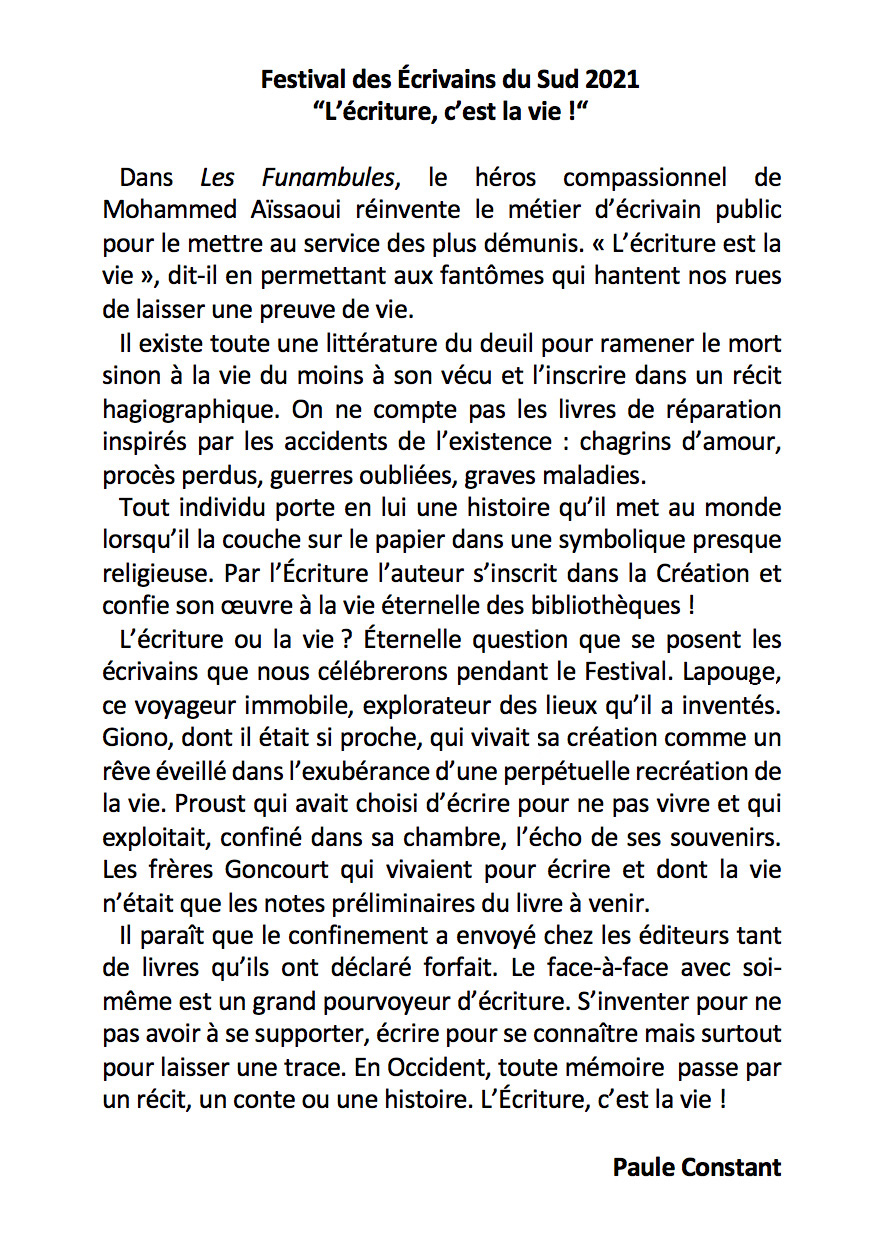 En 2015 est créé le FESTIVAL des Écrivains du Sud,
